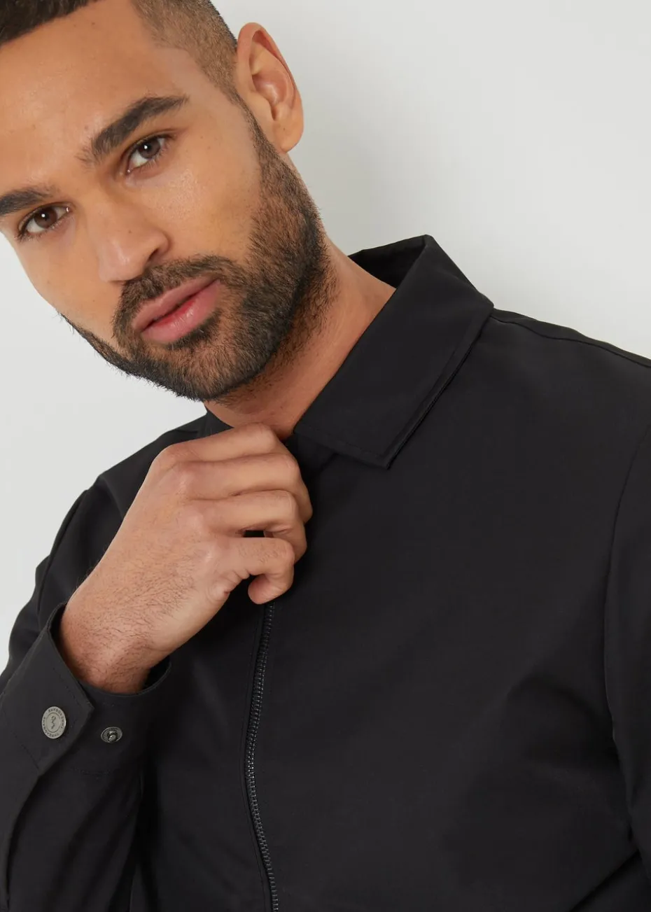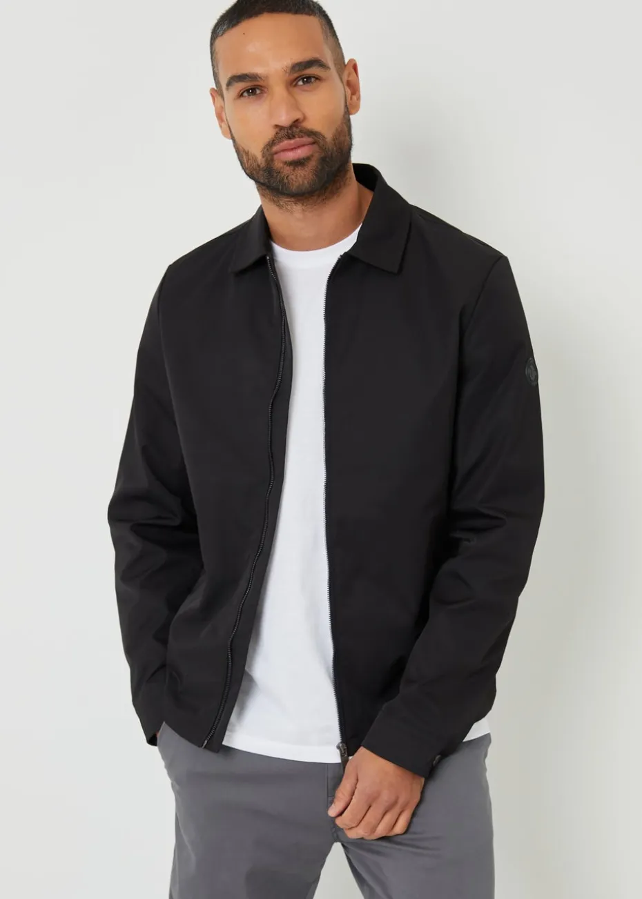 Threadbare Black Collared Lightweight Showerproof Zip-Through Jacket