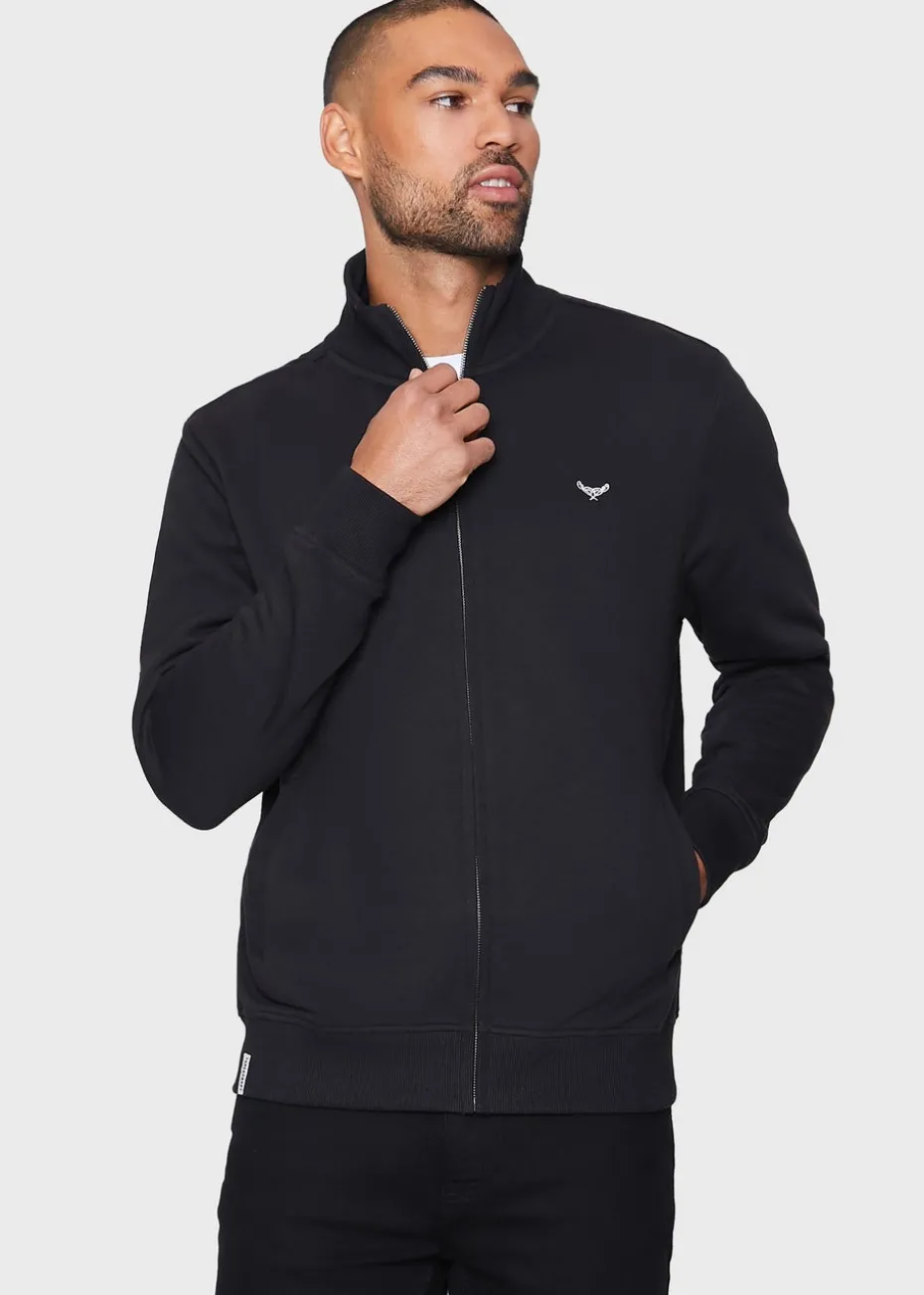 This zip through sweat top from Threadbare features a ribbed, funnel neck collar, cuffs and hem and has an embroidered logo on the chest. The soft, cotton blend fabric gives this style a very comfortable feel. Team with a classic pair of jeans for a casual outfit that never goes out of style. Other colours available.