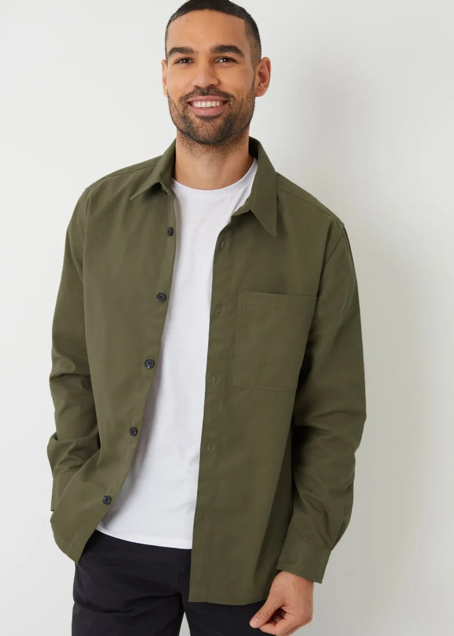 Ideal for transitional dressing, this cotton shacket from Threadbare is designed in a button-through style. It features a chest pocket and mock horn buttons on the cuffs, while a back yoke seam and side splits give it a tailored feel. Button up or wear open with a simple tee, or layer over a fine knit for in-between seasons. Perfect for laidback days when you still need to look on point.
