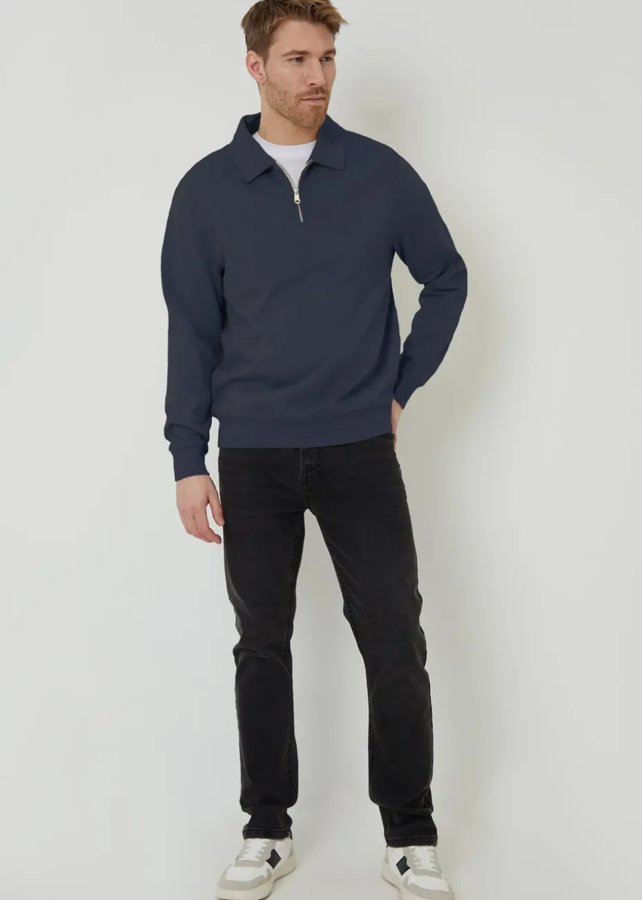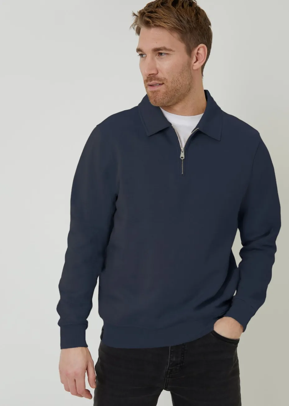 Threadbare Navy Quarter Zip Collared Sweatshirt