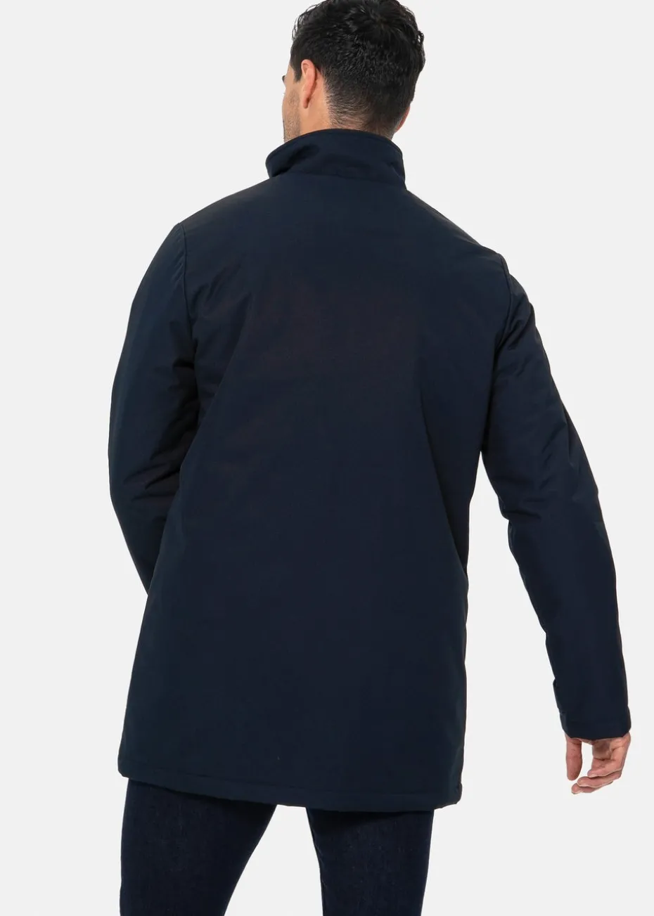 This stylish, showerproof coat by Threadbare is designed with everyday wear in mind. This full zip fastening raincoat has a funnel neck with snap fastening to keep the warmth in, and snap fastening cuffs for added detail. For comfort, it’s fully lined with a recycled polyester lining. The utility feel continues with two side pockets and a vertical zip fastening chest pocket, in addition to a handy inside pocket. Throw on over any outfit this season.