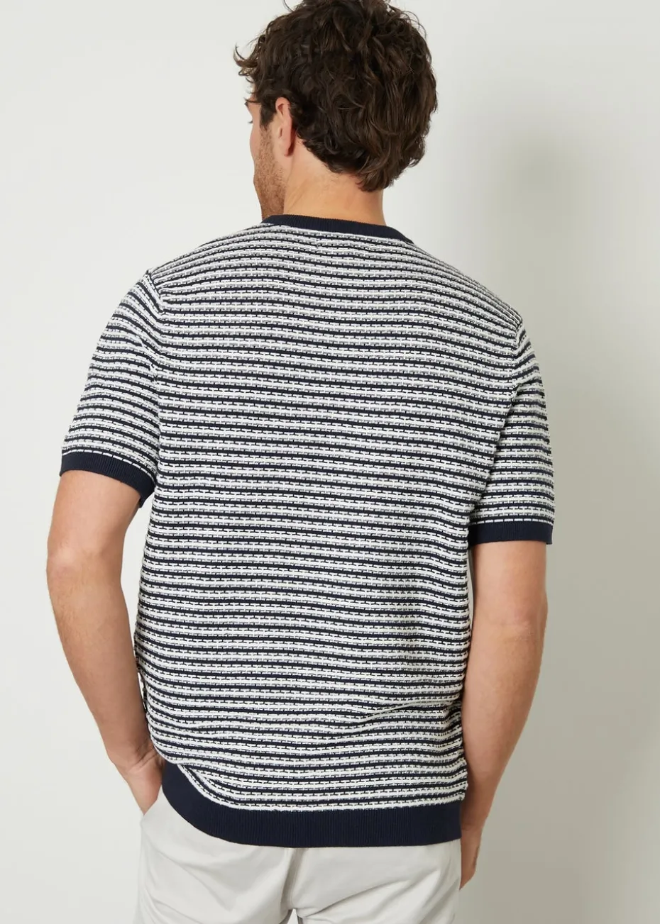 Threadbare Navy Stripe Textured Knitted T-Shirt