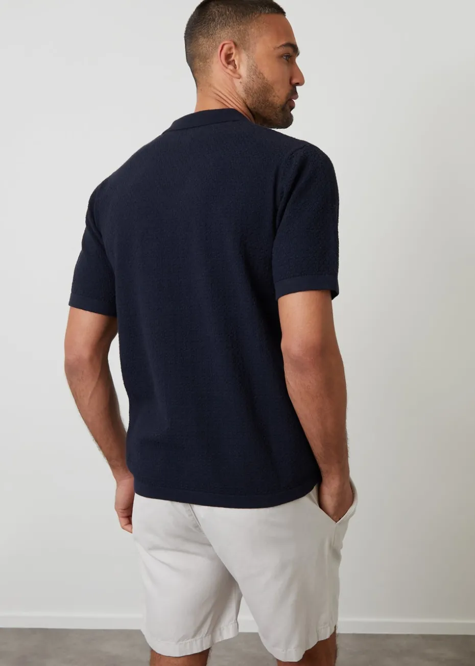 Threadbare Navy Textured Revere Collar Knitted Shirt