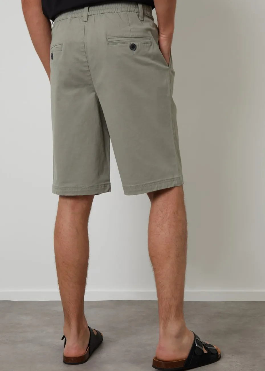 Upgrade your summer wardrobe with these versatile and comfortable chino shorts from Threadbare. Crafted from soft stretch cotton fabric, these relaxed fit shorts offer comfort and style. Designed with a part elasticated waistband, drawcords, and a mock horn button fly and feature two side pockets and two back pockets. Finished with belt loops, pleats down the front and a Threadbare metal branded tab on the back. Team with a casual tee for an easy summer outfit.