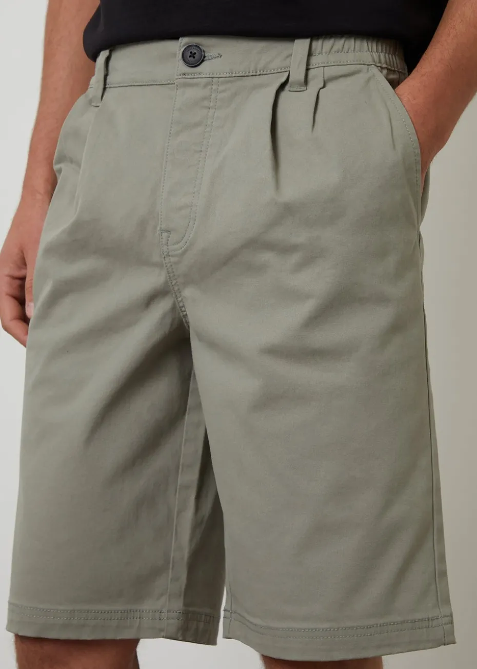 Threadbare Soft Green Pleated Relaxed Fit Stretch Chino Shorts