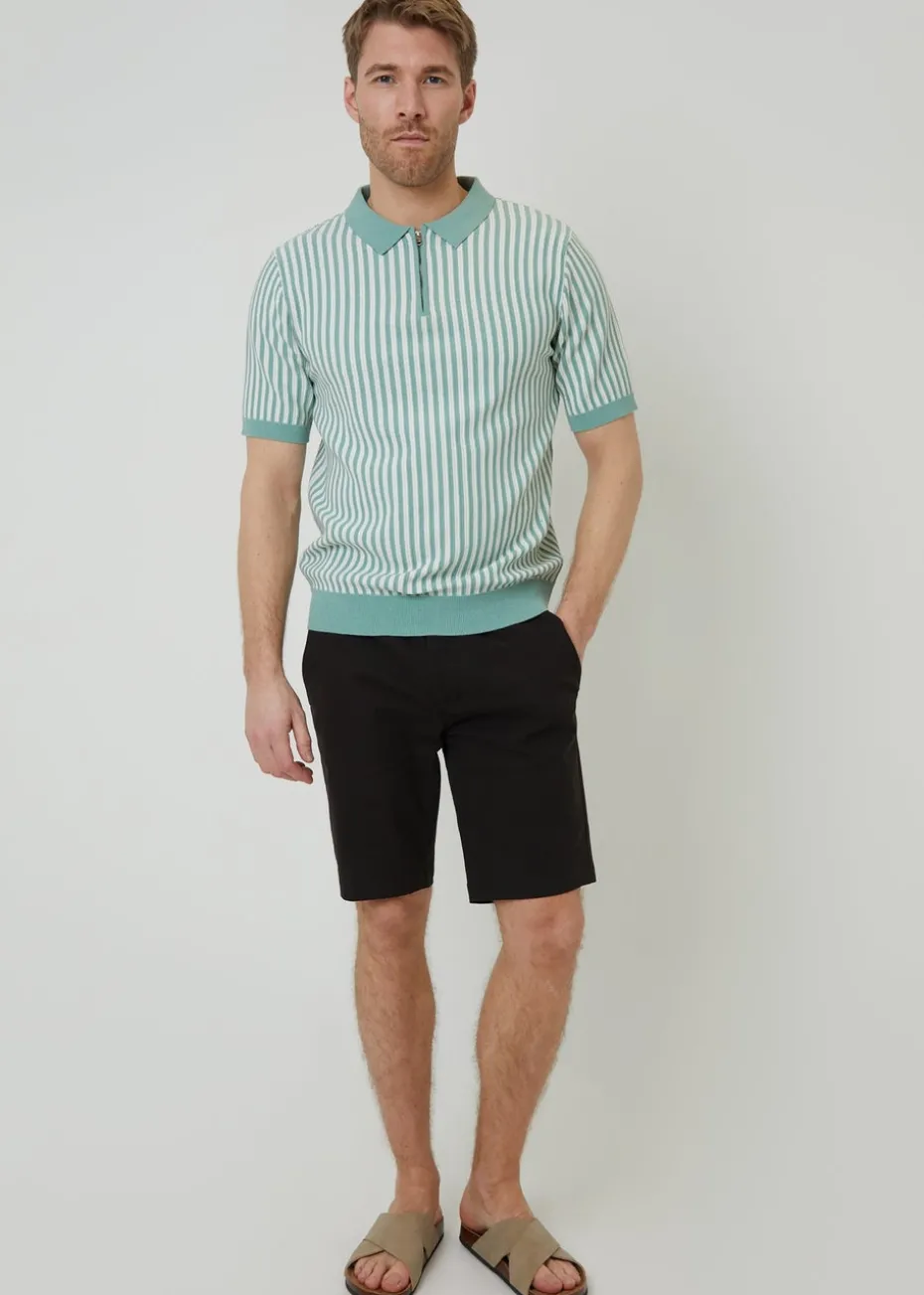Be the first to review “Threadbare Soft Green Textured Quarter Zip Striped Knitted Polo Shirt” Cancel reply