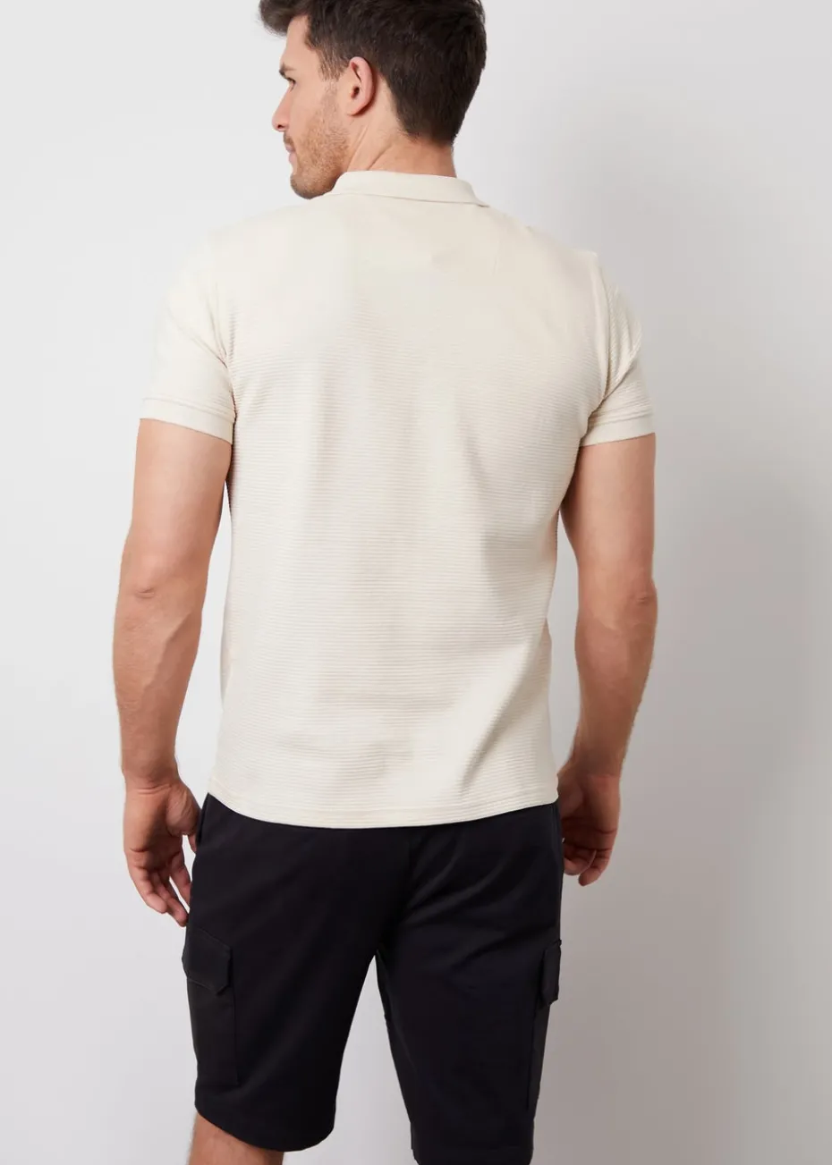 Threadbare Stone Ottoman Rib Textured Cotton Polo Shirt