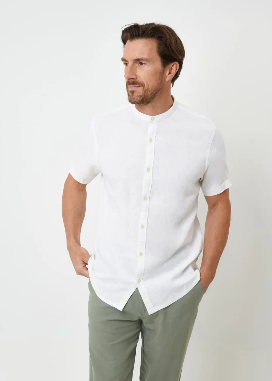 Threadbare White Grandad Collar Linen Blend Short Sleeve Shirt