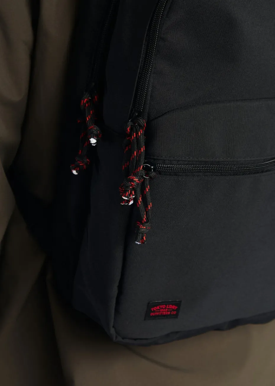 This basic black backpack from Tokyo Laundry features striking red detailing on the zip and a signature Tokyo Laundry badge. Perfect for everyday use, it combines style and practicality with spacious compartments and durable design. With two adjustable padded straps this is a sleek, functional accessory for carrying your essentials in style. Dimensions – H: 41cm, W:28 cm, D: 13cm.