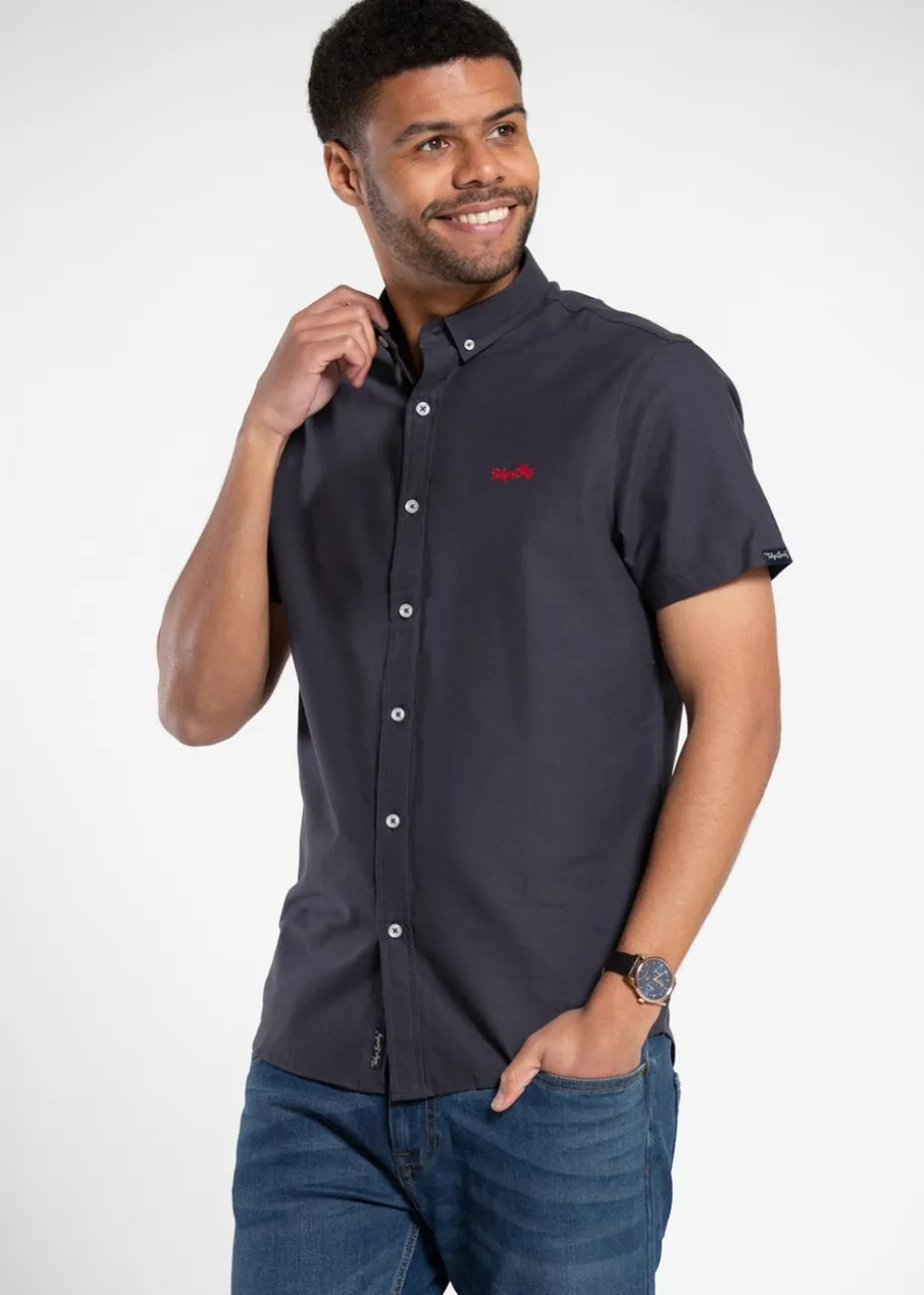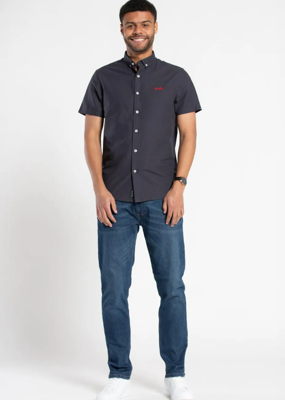 Tokyo Laundry Navy Cotton Short Sleeved Button-Up Oxford Shirt
