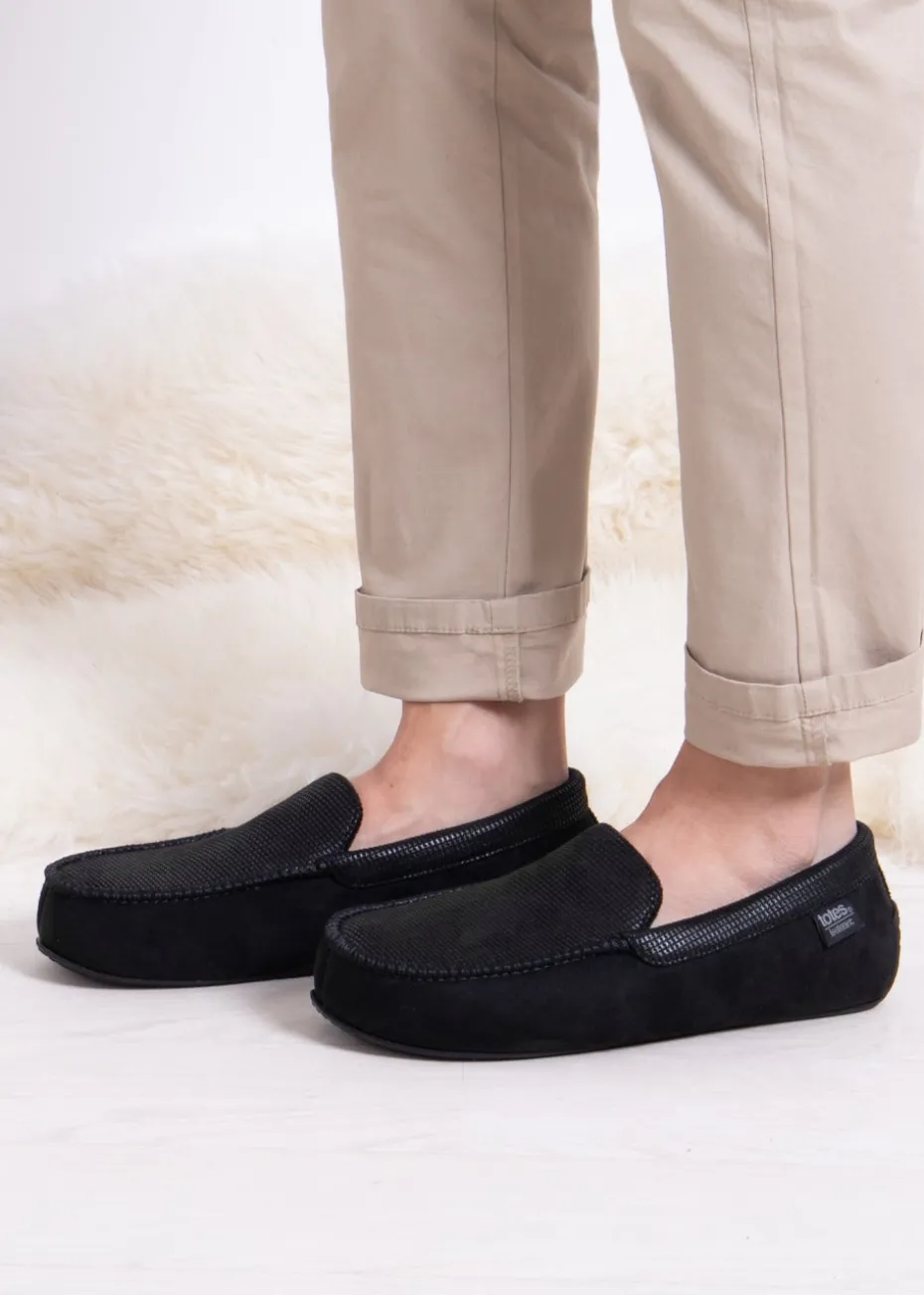 Totes Isotoner Black Square Patterned Smart Moccasin Slipper