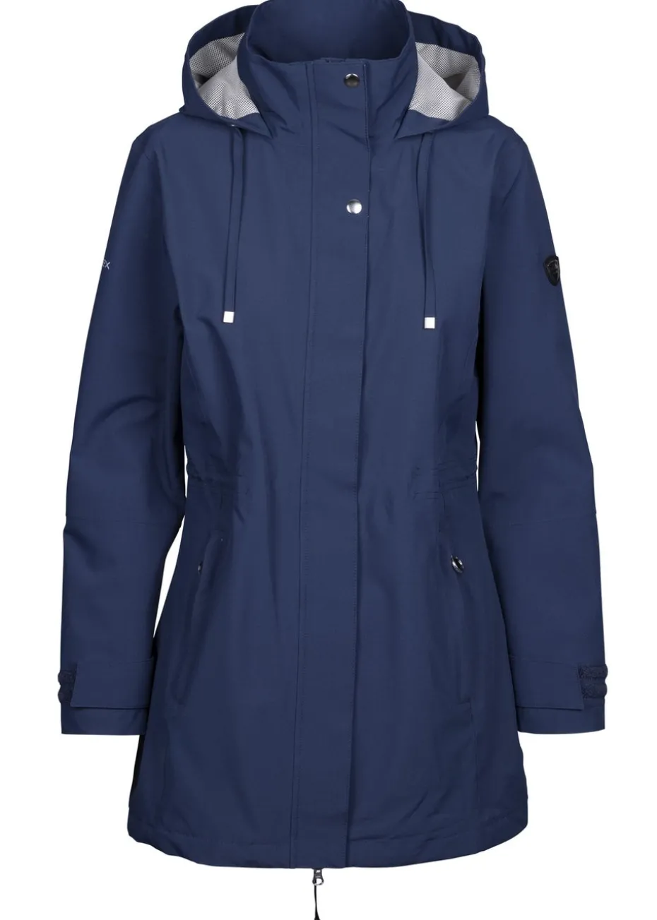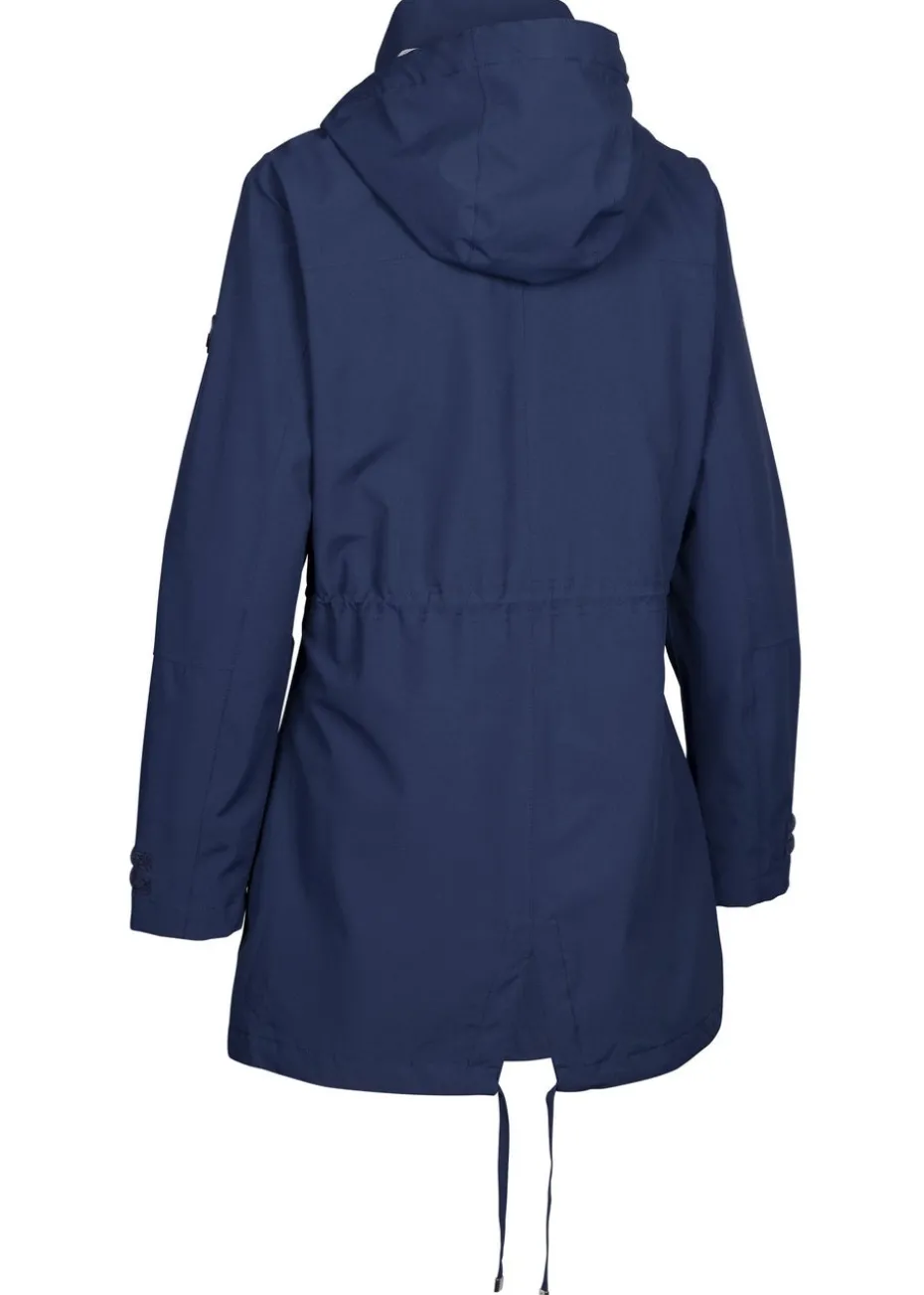 Walk confidently through rainy days with our Trespass Pavlina Waterproof Coat in navy, a stylish and functional raincoat that will keep you dry and fashionable. Thoughtfully designed with adjustable cuffs, a drawstring hood, and a two-way zipper for maximum comfort and coverage.