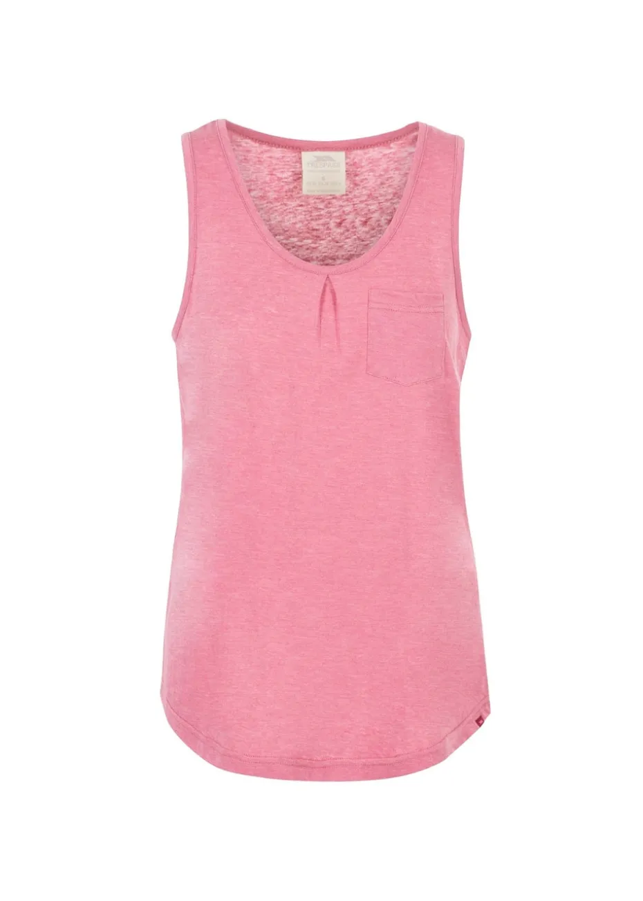 Sleeveless vest top with front pocket. Curved hem shape. Matching bindings. Soft pleat at front neck. Trespass Womens Chest Sizing (approx): XS/8 – 32in/81cm, S/10 – 34in/86cm, M/12 – 36in/91.4cm, L/14 – 38in/96.5cm, XL/16 – 40in/101.5cm, XXL/18 – 42in/106.5cm.