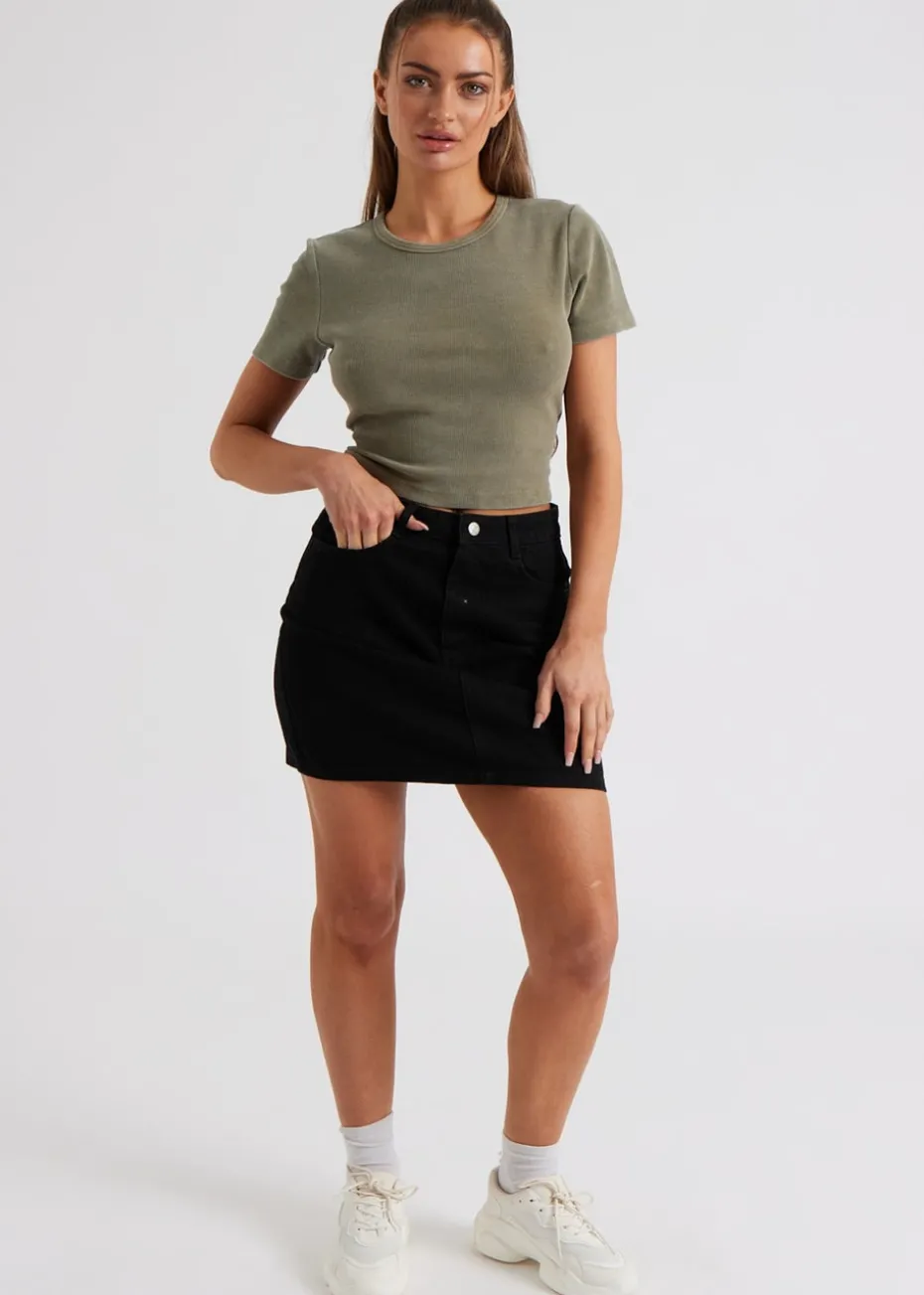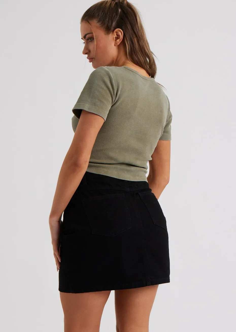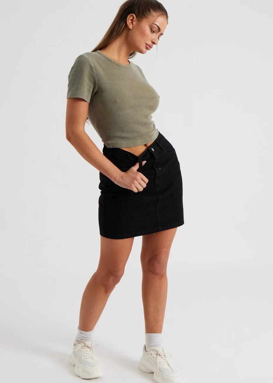 Urban Bliss Khaki Washed Ribbed Tee