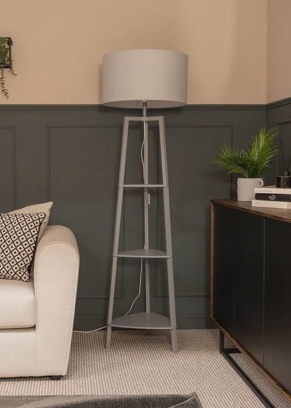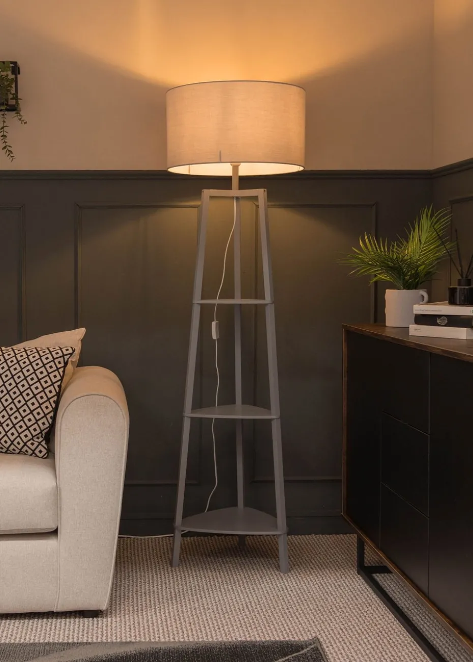 ValueLights Hiru Grey 3 Tier Shelf Floor Lamp Grey Shade (138cm x 44cm x 44cm)