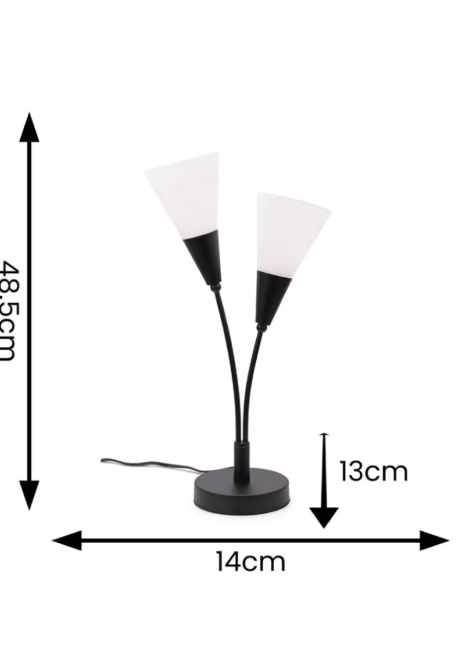 The Kristina two way table lamp in black gives any room a double modern glow. In an uplighter style, this table lamp will add multi dimensional lighting to any space. Requires bulb with E14 fitting