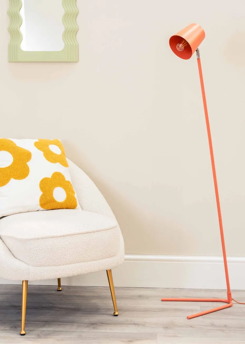 The Lark dome shade floor lamp in coral injects a pop of colour wherever you place it. Cute, colourful and full of charm, this standing lamp is there for you whether you want to liven up your workspace, highlight your hobbies, or add vibrance to a dreary corner. Painted in a stylish coral, it can be the ideal accent in a matching colour scheme. But don’t be scared to colour clash too! Requires bulb with E27 fitting