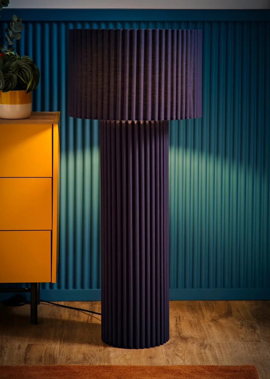 ValueLights Lenny Drum Lamp Shade Colour Drench Ribbed Fabric Midi Floor Lamp
