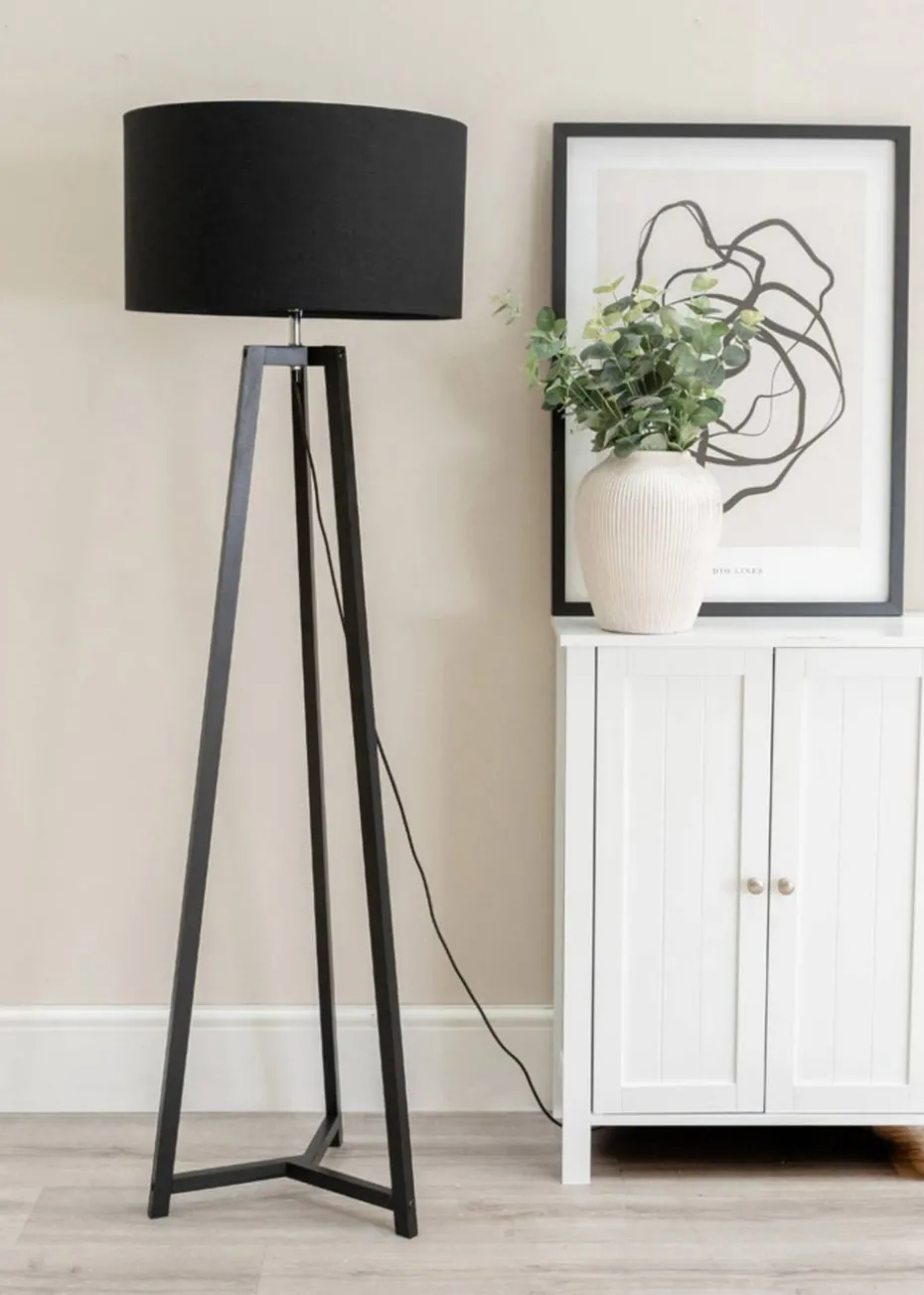 The Lottie tripod floor lamp in black wood is the perfect neutral base for every home. The black wood base adds a chic and modern feel to any home, and combined with a stylish large drum lamp shade to really set off the perfect look. Available with black or grey shade to suit your space, this is ideal for living and dining spaces to complete the look.