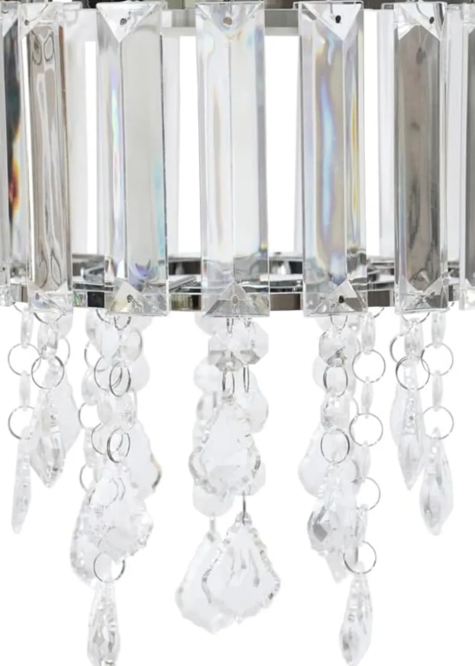 Experience modern elegance with this jewel detailing lampshade. With its unique design, this shade is the perfect statement piece for your home. The acrylic jewel droplets add a glamourous and sophisticated feel. Easy fit pendants are ideal for a quick style change without needing an electrician. This pendant looks just as effective switched off as it does on. Requires bulb with B22 / E27 fitting