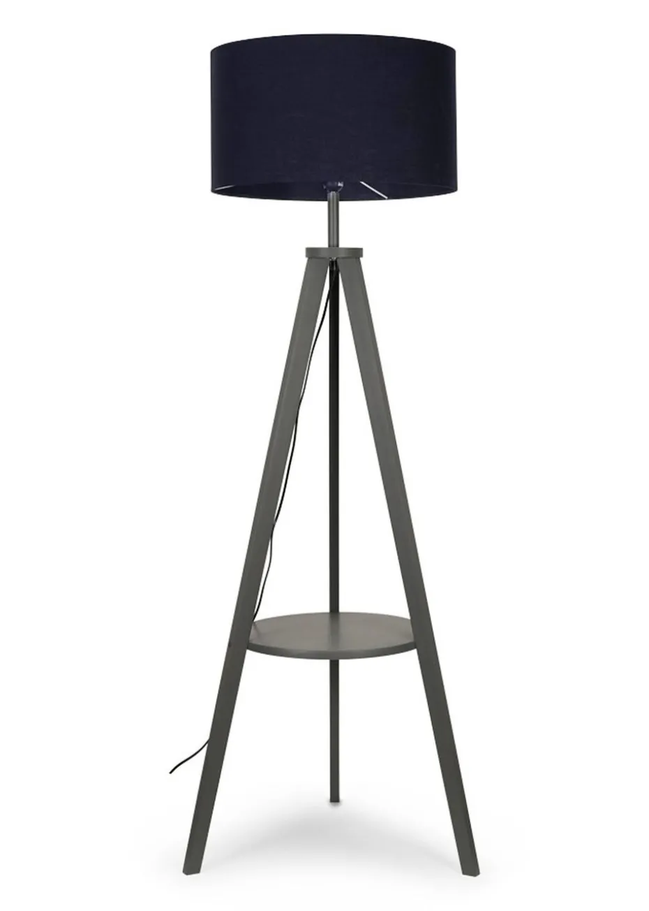 ValueLights Morrigan Grey Wood Tripod Floor Lamp Navy Shade (147cm x 45cm)