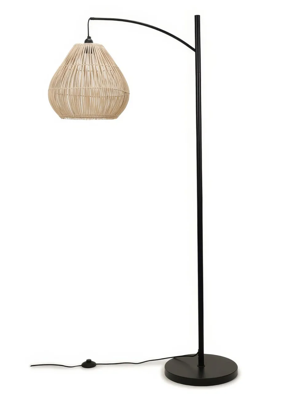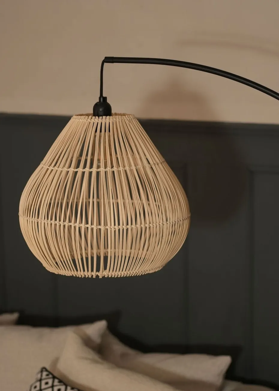 Update your living space with the latest trends in lighting. Mixing quality materials and stylish designs, our range of products are perfect for adding a modern style to your home. This floor lamp comes in black metal finish and features a curved design stem. Its simple yet stylish design will add a minimalist touch to your living space. Complete with a rattan design wicker lampshade. The natural texture of the lampshade adds warmth and depth to your decor. The in-line foot switch provides convenient control, making it easy to illuminate your space. Requires 1 x LED 6W ES E27 bulb (not included).