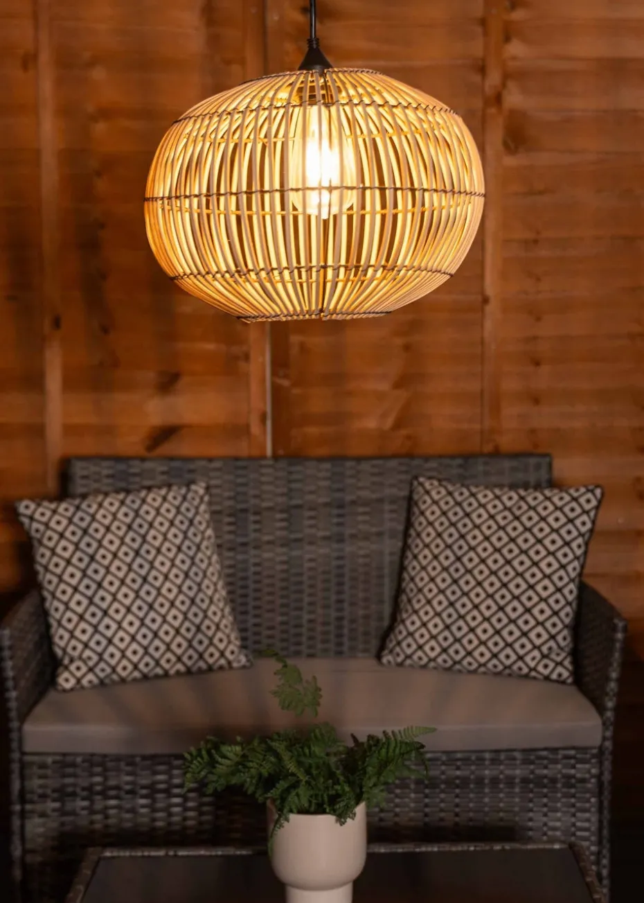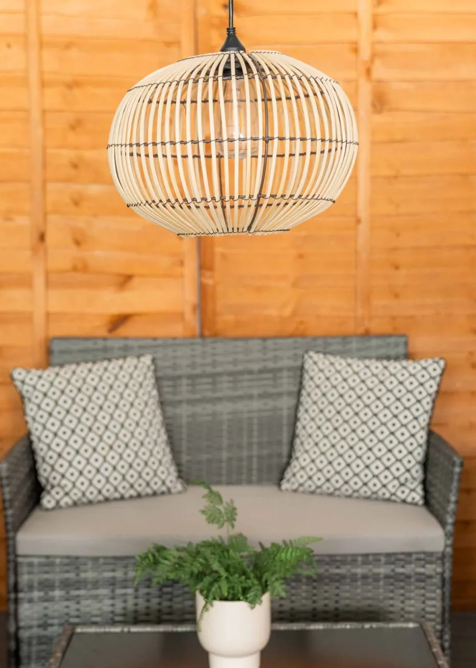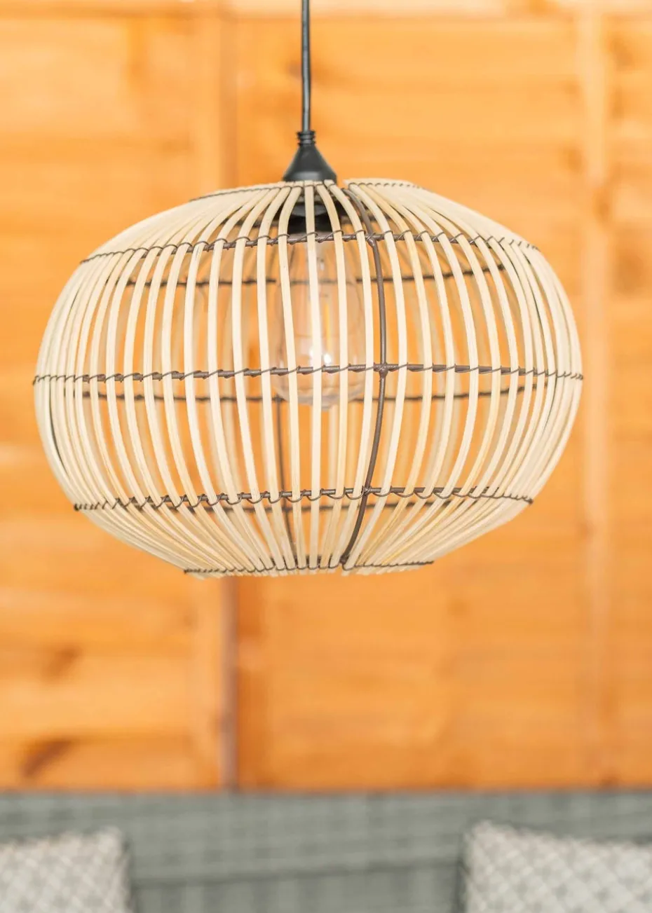 Meet this solar powered oval bamboo pendant light, where style basks in the sunshine! This eco-friendly beauty soaks up the sun by day With glows warmly by night. Crafted from bamboo With powered by an external solar panel, it’s greener than your lawn after a downpour. The solar panel also has a hWithy clip for installation! No wires, no hassle, just effortless charm With a big solar-powered soul. Perfect for your garden, patio, or any space craving a little extra glow!
