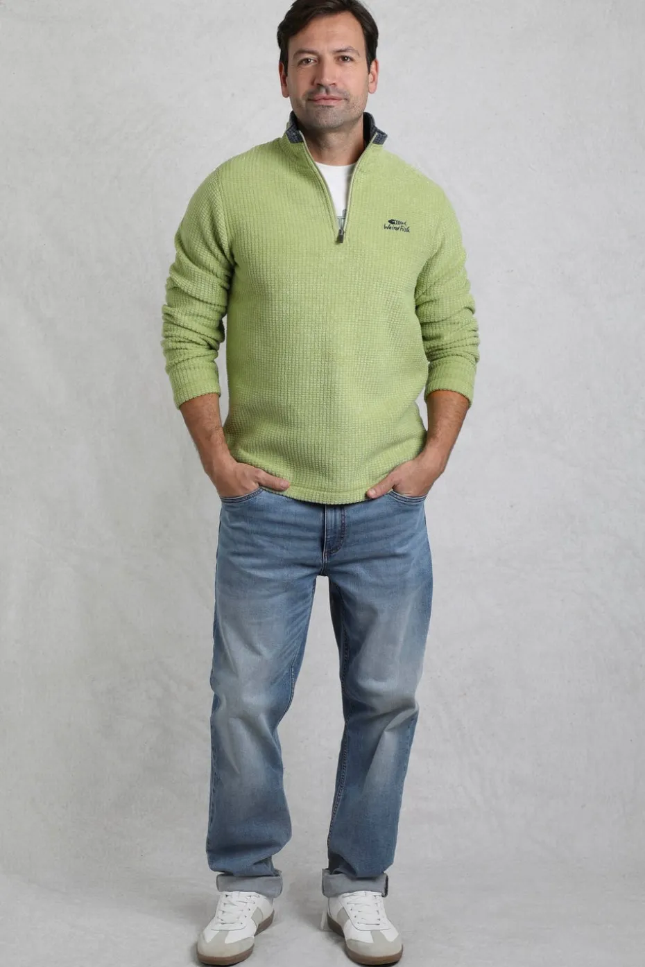 Weird Fish Soft Green Newark 1/4 Zip Grid Fleece