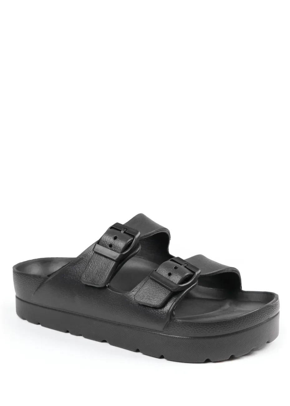Introducing our Slider Sandals with Buckle. The perfect combination of style and comfort for the modern woman. These sandals are designed to elevate any outfit while providing a comfortable fit throughout the day. Key Features: Sleek Design: The minimalist and sleek design of these slider sandals exudes elegance and sophistication. The double-strap detail with a buckle closure adds a touch of uniqueness and allows for a secure and adjustable fit. Versatile Fashion: These sandals are incredibly versatile and can be effortlessly paired with a wide range of outfits. Whether you’re heading to the beach, running errands, or going out for a casual dinner, these sandals will elevate your style and complete your look. Comfortable Fit: The cushioned insole provides exceptional comfort, allowing you to wear these sandals all day without any discomfort or fatigue. The open design of the sandals also ensures breathability, keeping your feet cool and fresh even on the hottest summer days. Specifications: Material: Strap Detail: Features a double-strap design that adds elegance and polish to these sandals. Open Toe: The stylish Open toe design adds a fashion-forward element to these sandals. Closure: Includes a buckle closure for a secure and adjustable fit. Sizes: Multiple sizes available Colours: Multiple colours available Slip into style and comfort with our Slider Sandals with Buckle. These sandals are the ultimate combination of fashion and functionality, making them a must-have for any wardrobe. Step into your day with confidence and enjoy the attention these sandals will bring. Upgrade your footwear collection and experience the perfect blend of style and comfort today. Where’s That From crafts footwear with the utmost care with YOU in mind. Our in-house unique designs offer the latest trends with supreme luxury comfort and unparalleled quality. Looking for ideas on how to put together an outstanding look? Follow our social media accounts for daily inspiration!