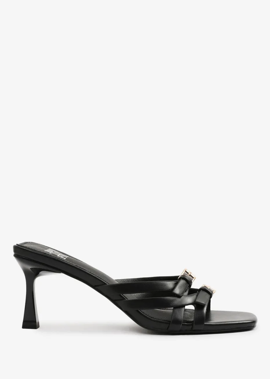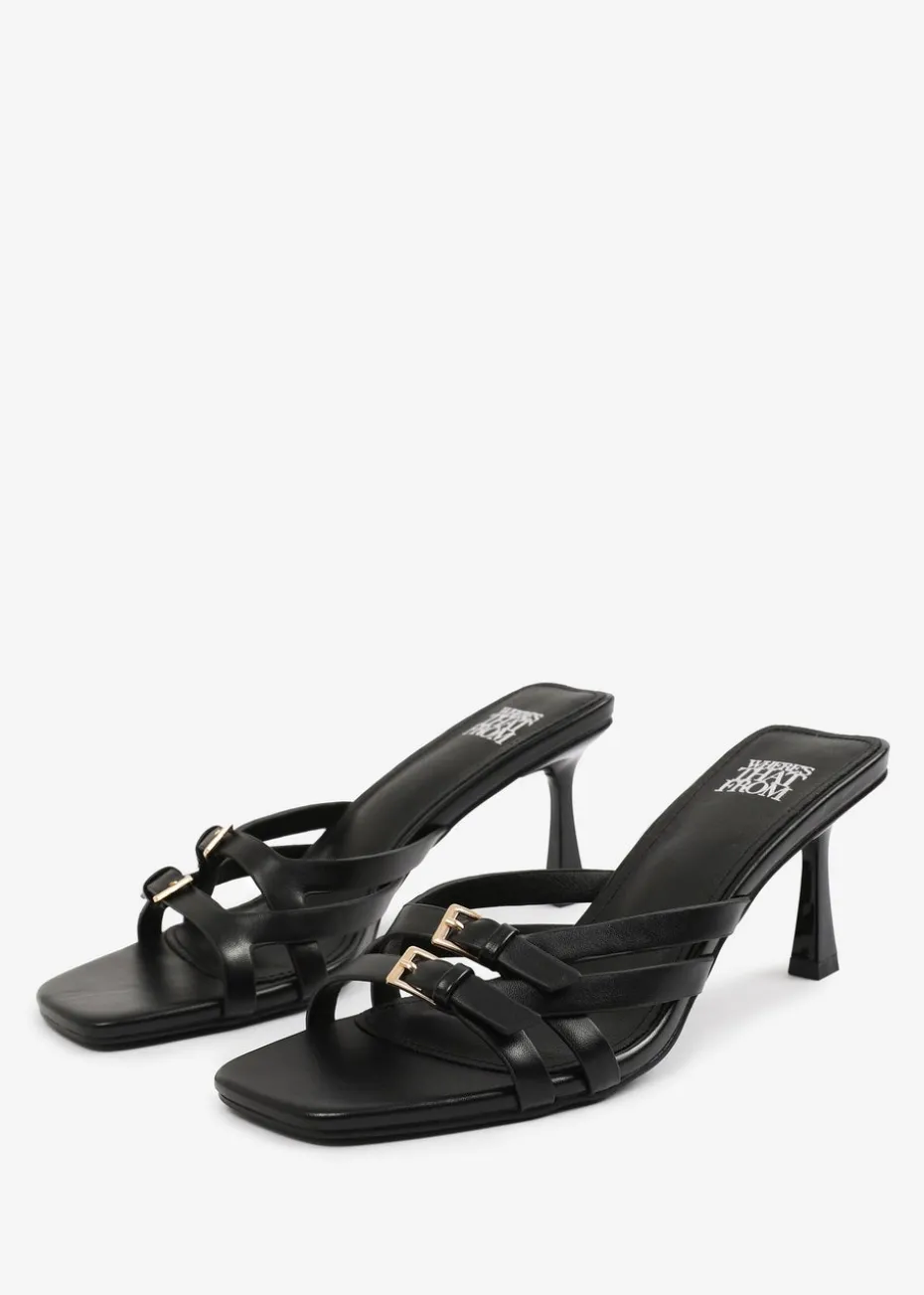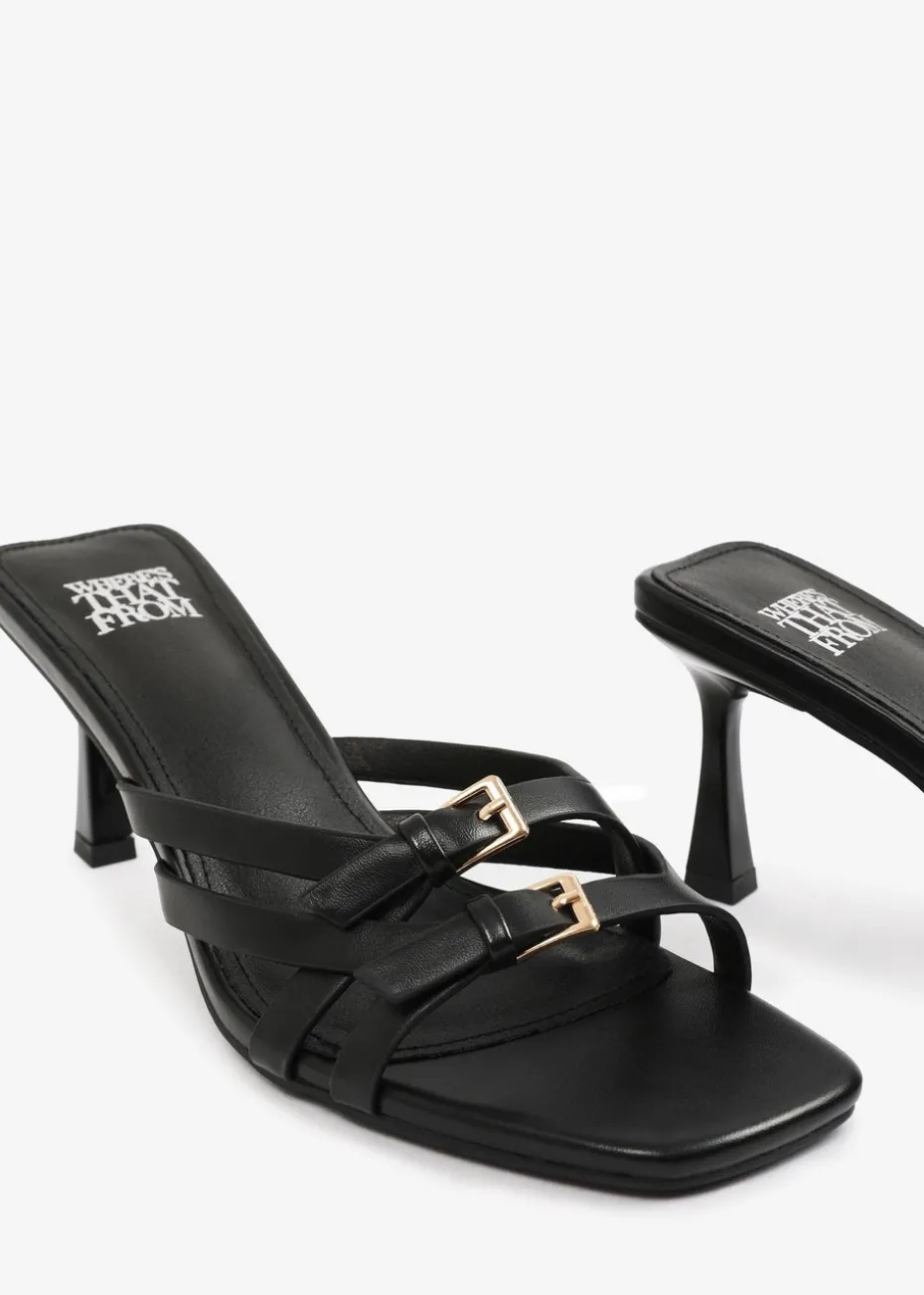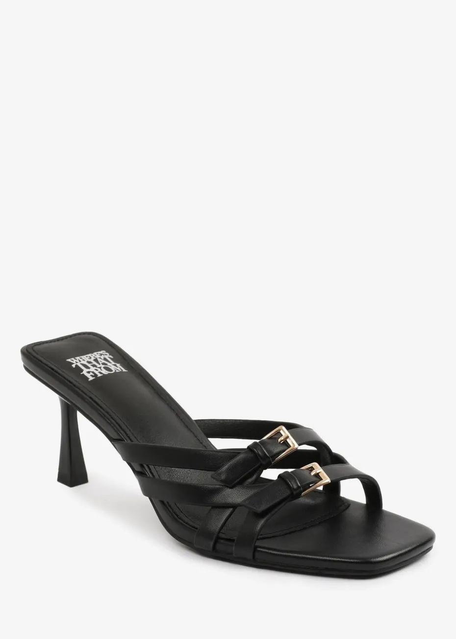 Where's That From Black PU Ariela Cross-Over Buckle Details Strap Heel