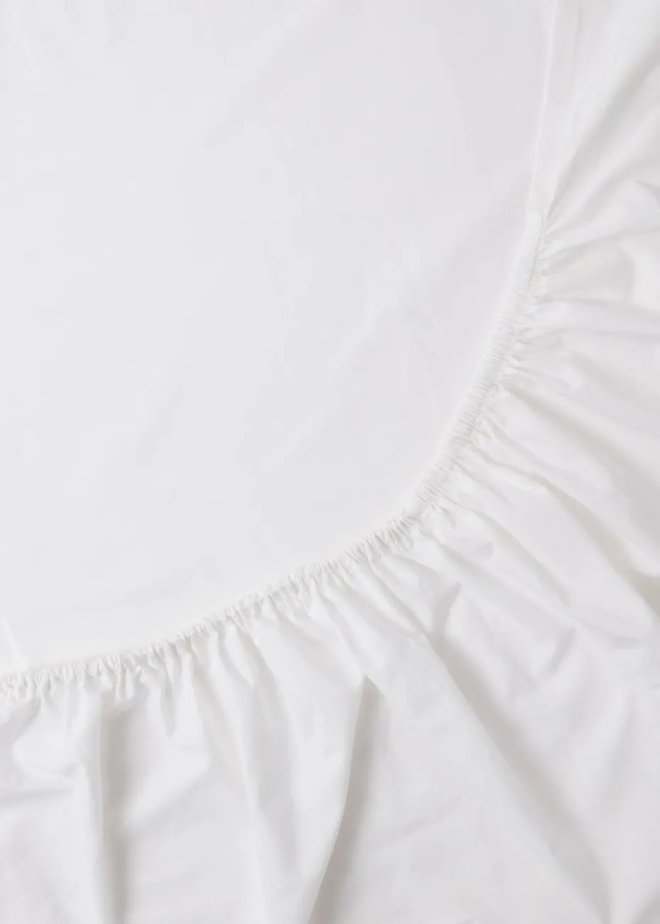 This deep-fit sheet is tailored to snugly accommodate thicker mattresses, ensuring a perfect fit without slipping off. The pristine white colour adds a touch of elegance to your bedding while providing a versatile base to complement any bedroom decor. Enjoy the softness and durability of this cotton sheet, designed to elevate your sleep with its quality and deep fit construction.
