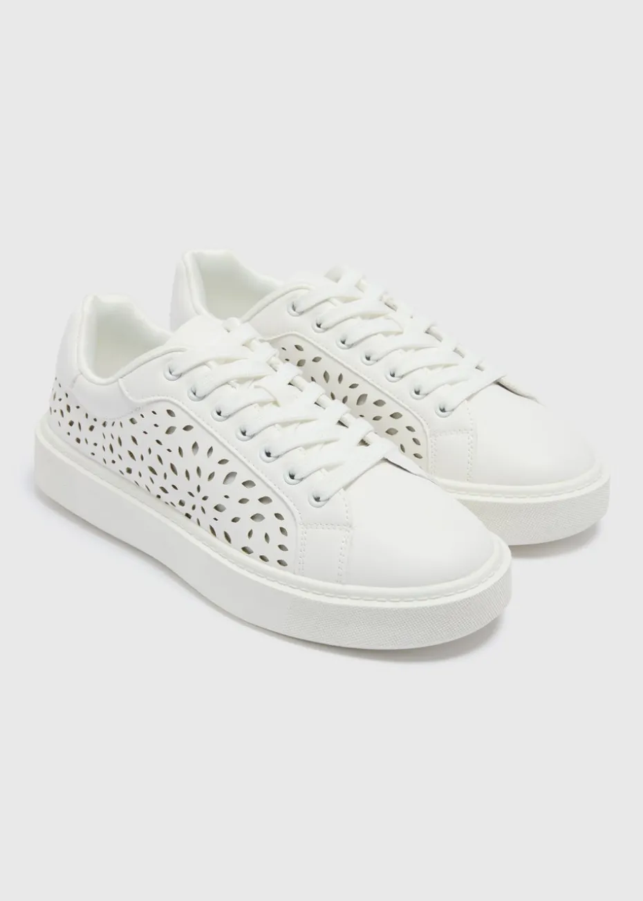 Take your sporty style to the next level with our white lazercut trainer shoes, a fusion of fashion and athleticism exclusively from our Ladieswear collection.