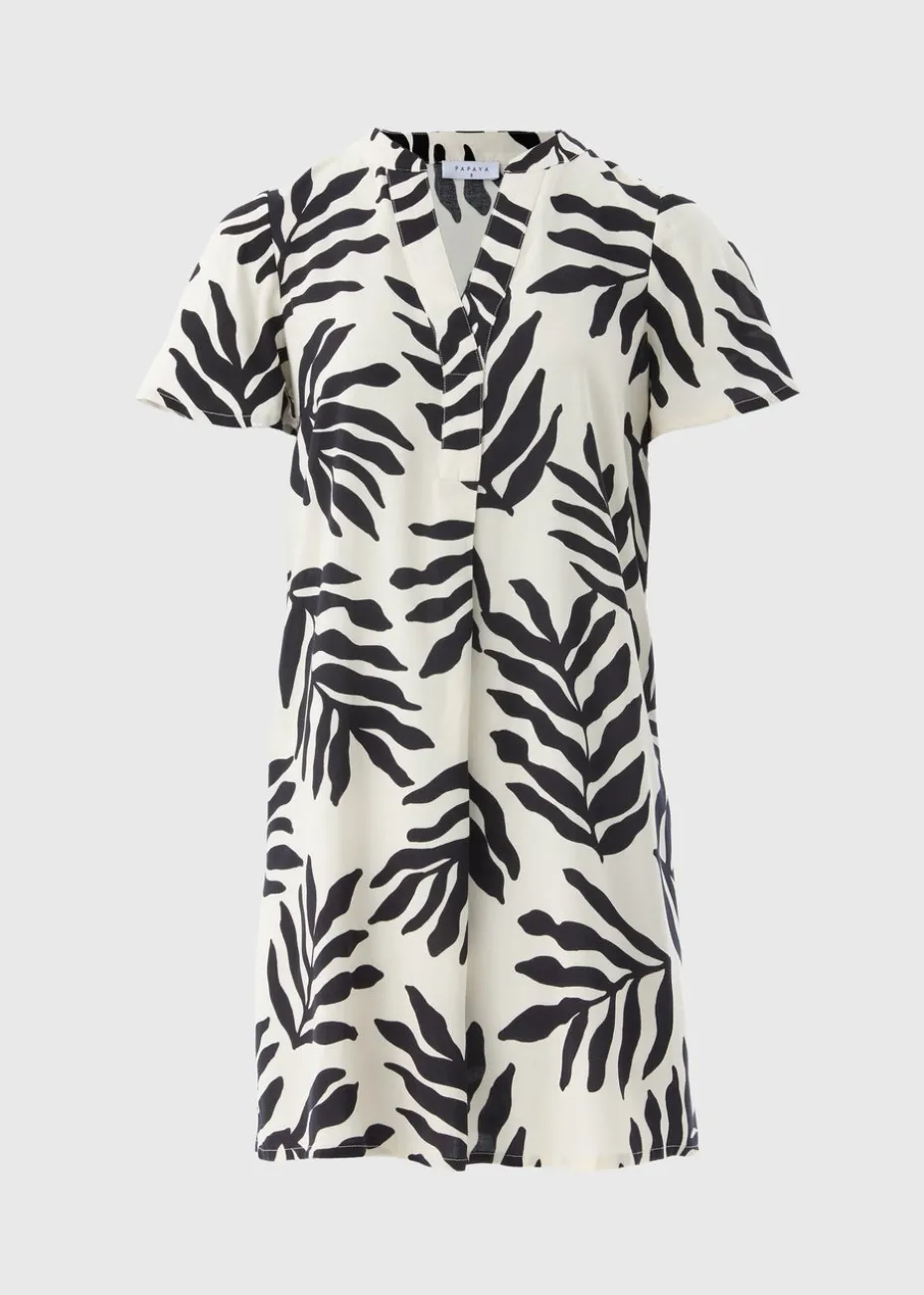 This White Leaf Popover Tunic is a versatile and stylish piece that can be dressed up or down. Crafted from a soft and smooth fabric, it features a beautiful leaf print in black and white. The relaxed silhouette is flattering on all body types, while the popover style makes it easy to wear. Perfect for layering over swimwear.