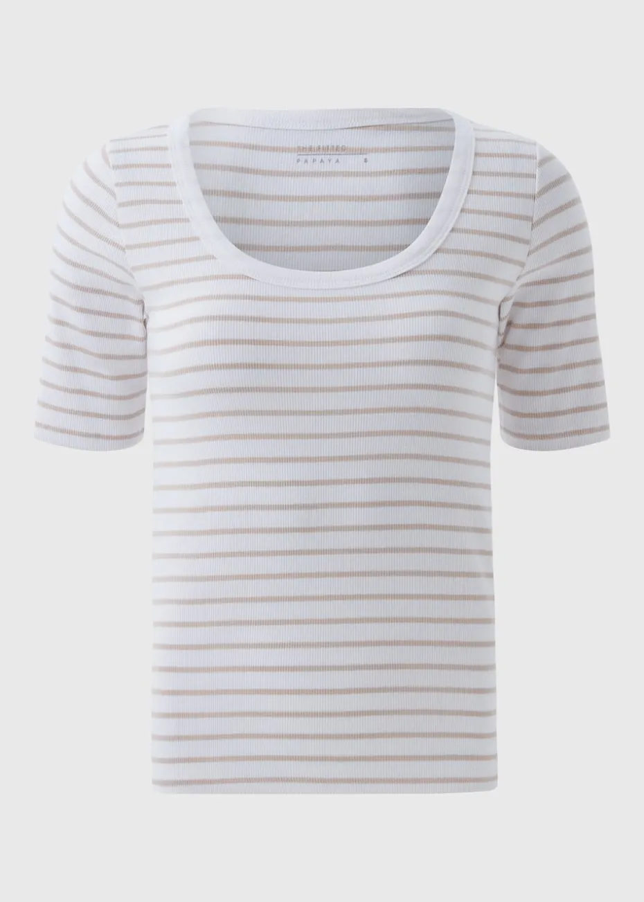 Add texture and style to your everyday essentials with the White Stripe Ribbed T-Shirt. Featuring a subtle vertical ribbed design and clean stripe detailing, this tee brings a modern twist to a classic wardrobe staple. Made from soft, breathable fabric with a touch of stretch, it offers a slim, flattering fit that moves with you. Whether you’re layering it under a jacket or wearing it solo, this versatile piece is perfect for both off-duty looks and low-key evenings out.