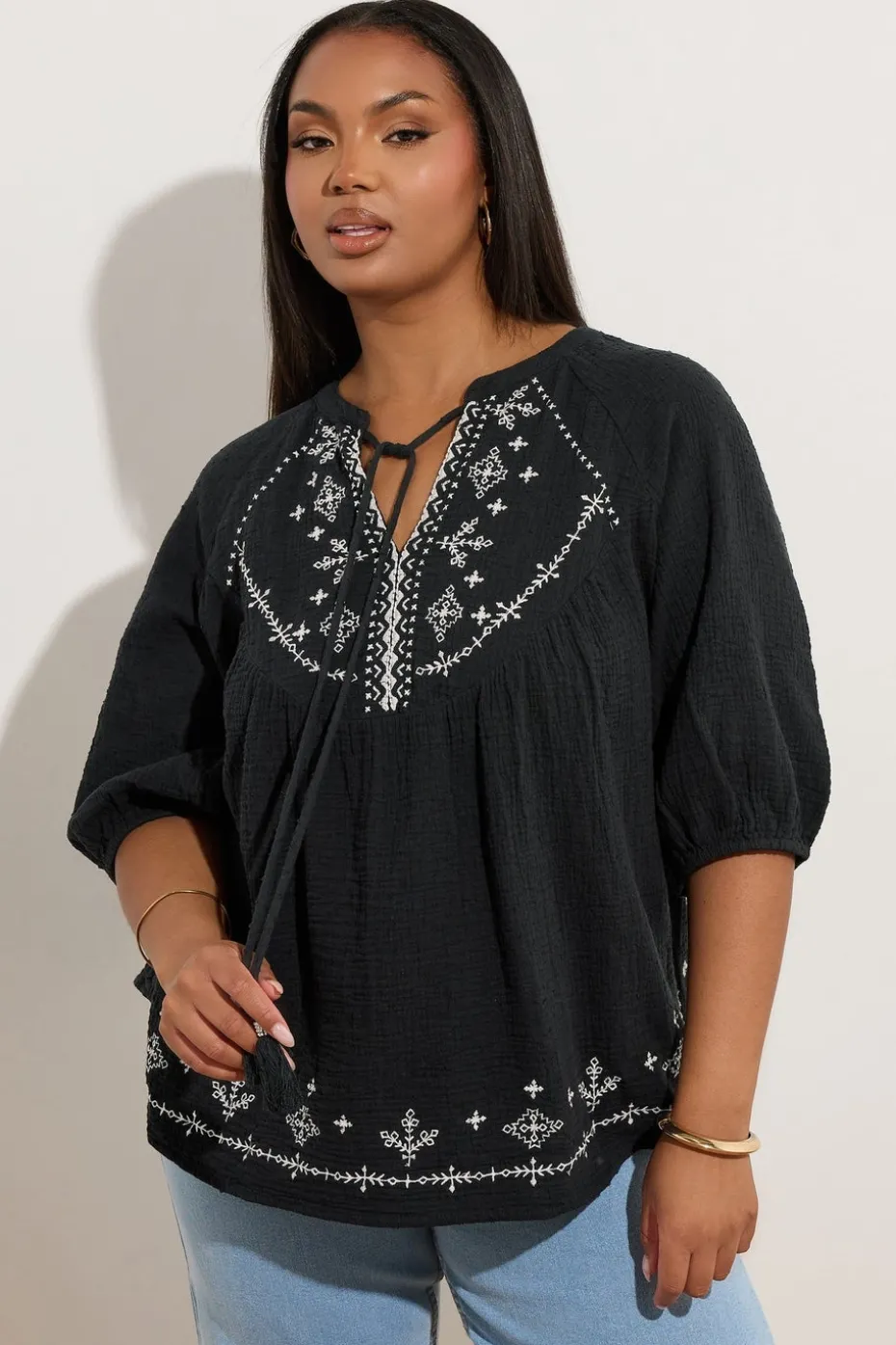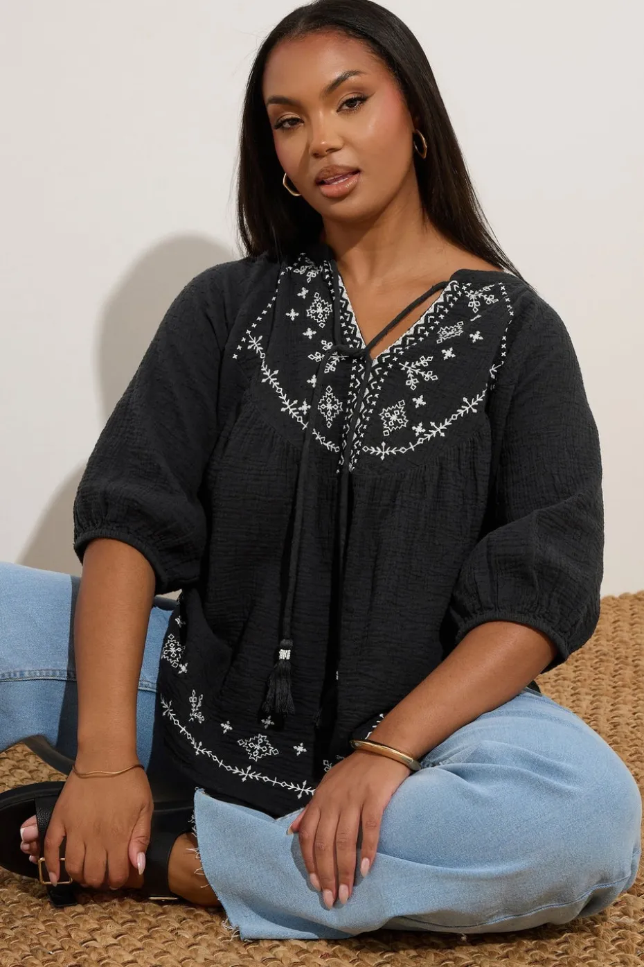 Be the first to review “Yours Curve Black Embroidered Tie Front Blouse” Cancel reply