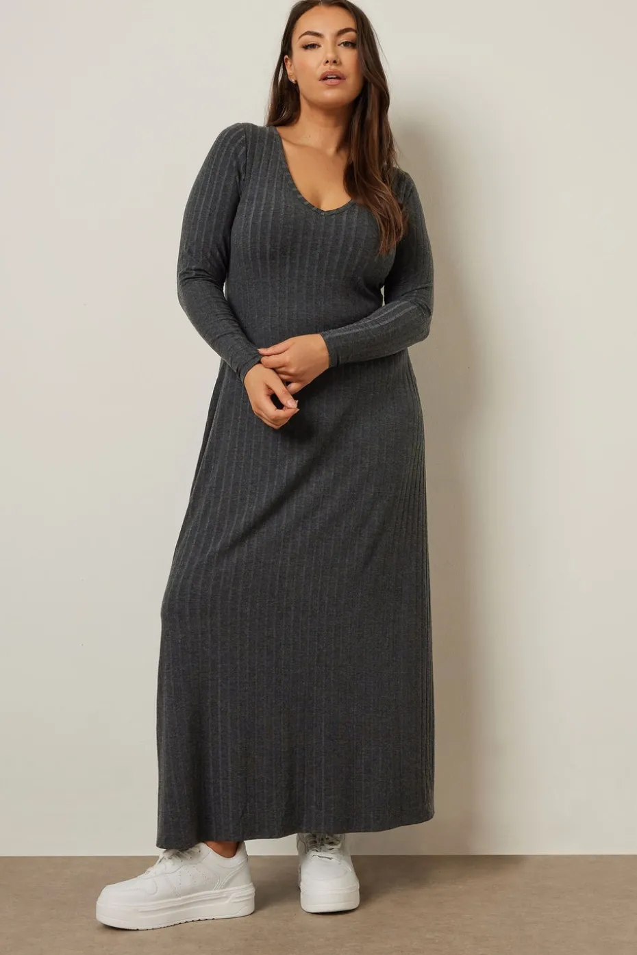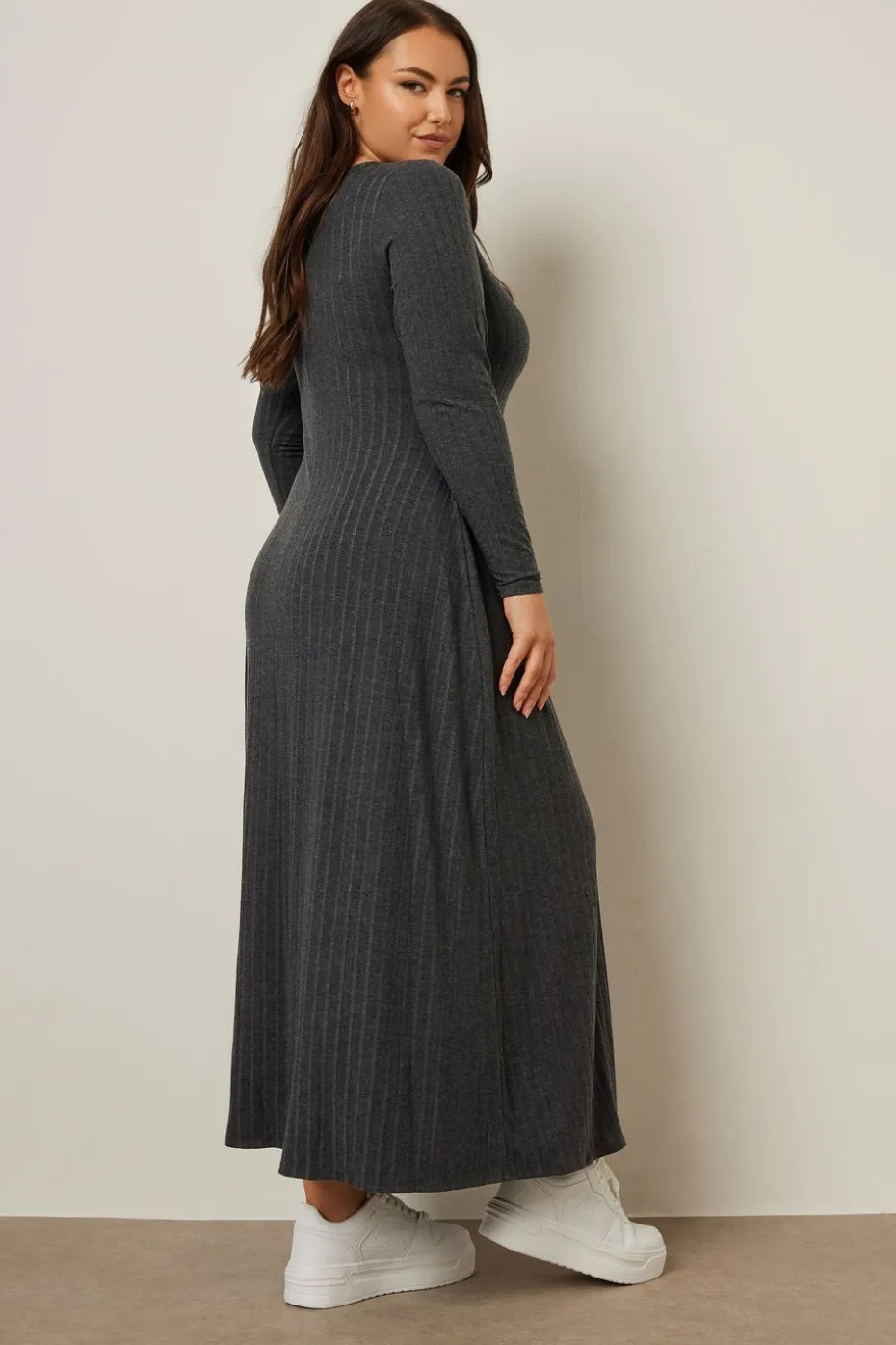 Be the first to review “Yours Curve Charcoal Grey Ribbed Flare Maxi Dress” Cancel reply