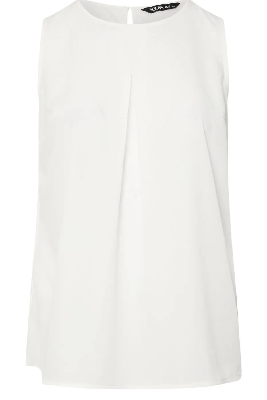 Easily elevate your going out wardrobe with this must have vest top Made from a breathable woven fabric, it features a lace back insert, a scallop hem, a pleat front design, and a keyhole back complete with a button fastening. Partner with jeans and your favourite heels for a look you can rely on Model is 5′ 8.5″/ 174cm and size UK 18/EU 46.