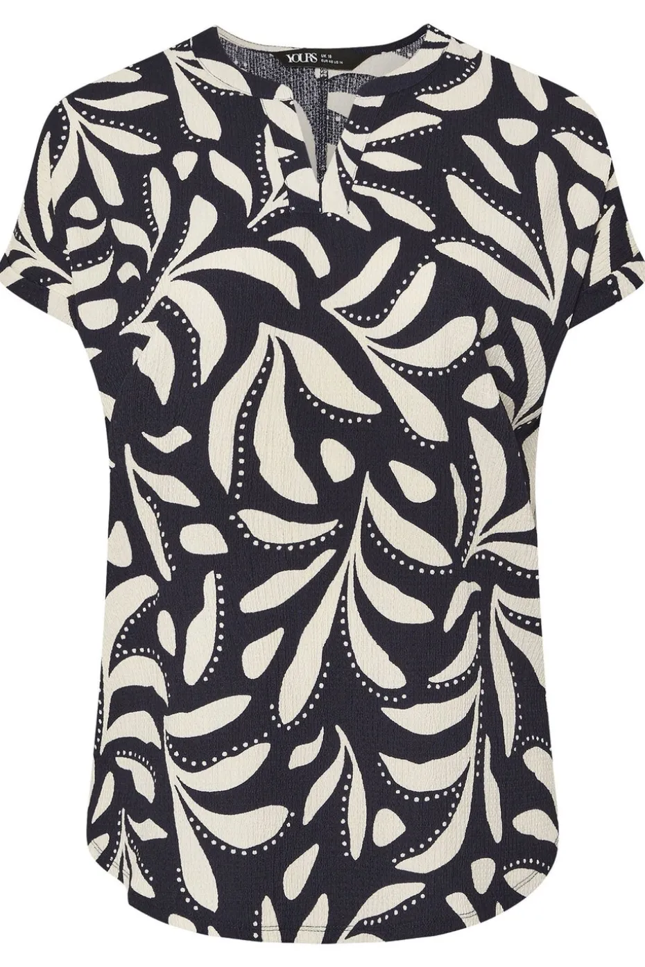 Be the first to review “Yours Curve Navy Blue Textured Leaf Print Notch Neck Top” Cancel reply