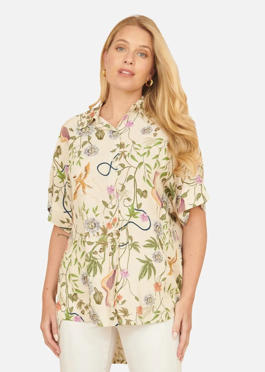 This botanical print shirt is perfect for the summer months, crafted from lightweight viscose. Easy to style with jeans or linen trousers, the easy shape lends itself to packing for holidays or sunny days out.