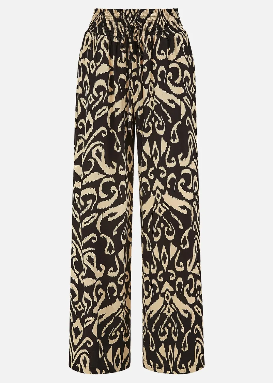 All over prints are big news this season! Adding them to your wardrobe is an sure fire way to be bang on trend. We love these trousers with Ikat print, in a relaxed fit that shouts out to Summer dressing, wear with trainers or sandals and a plain top. The lightweight airy fabric is great for everyday dressing, with a comfortable ruched waistline and pockets.