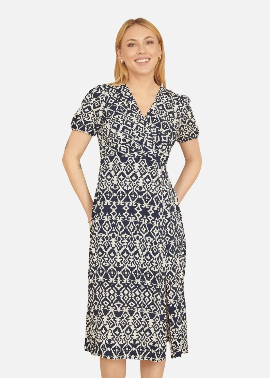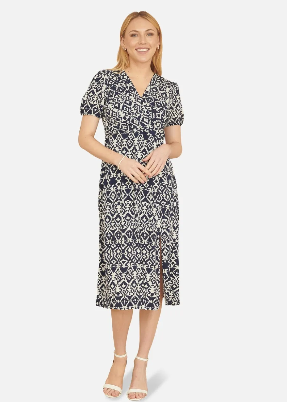 Be the first to review “Yumi Navy Ikat Print Midi Dress With Split Hem” Cancel reply